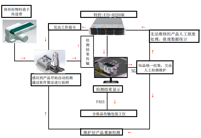 基于客戶對手機(jī)裝配檢測解決方案的需求,推薦特控雙路E5系列服務(wù)器”EIS-H2205R”為檢測設(shè)備的核心控制主機(jī),助力客戶實現(xiàn)產(chǎn)品檢測高品質(zhì)、高效率。