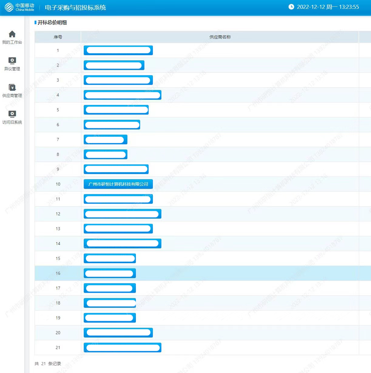 近日,廣州市研恒計(jì)算機(jī)科技有限公司(以下簡稱“廣州研恒”)在中國移動(dòng)2022年至2023年桌面筆記本電腦及臺式機(jī)電腦產(chǎn)品集中采購項(xiàng)目投標(biāo)過程中獲得報(bào)價(jià)第一名。