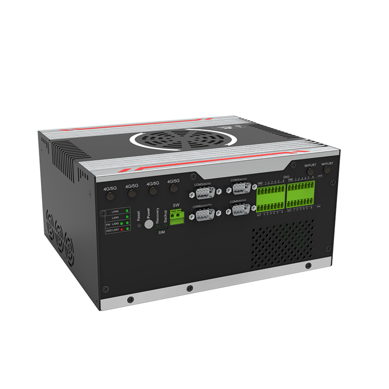 與豎向等多種放置的自然對(duì)流散熱,機(jī)箱可抗接觸式6KV強(qiáng)電磁干擾,DC12V-24V寬壓輸入接口豐富:4*LAN(Intel),6*COM,24*GPIO(12*GPI,12*GPO,帶隔離),7*USB3.0+1*USB2.0,1*VGA,